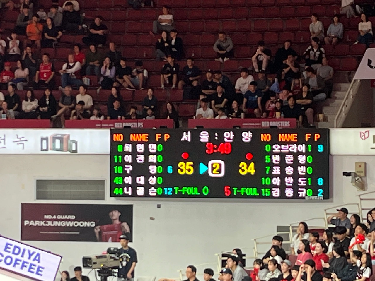3 쿼터 2분여 남기고 팀파울 삼성 3, 안양 1.
