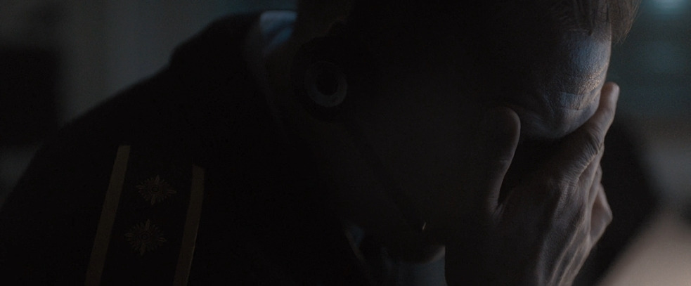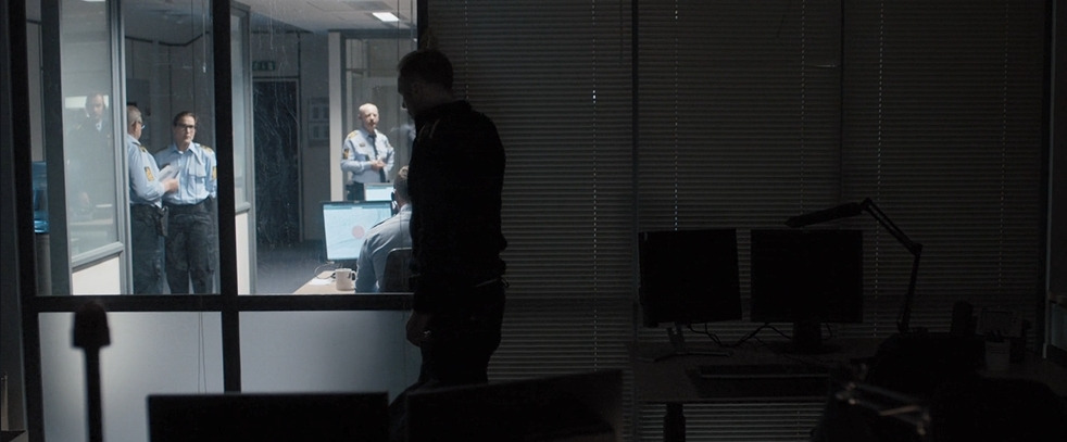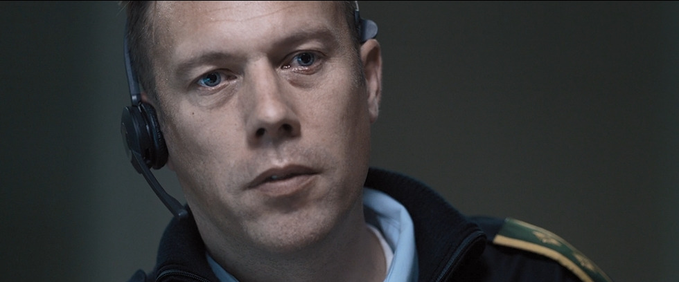 <더 길티>의 형식적인 특징은 1인극이라는 점입니다. 센터동료들의 얼굴 정도는 나오지만 전혀 핵심이 아니며, 주요 인물들은 모두 통화 상의 목소리로만 드러납니다. 영화 전면에 나타나는 인물은 오직 아스게르 한 명 뿐입니다. 이는 작품의 주제의식을 부각하는데 매우 적합하게 기능합니다.