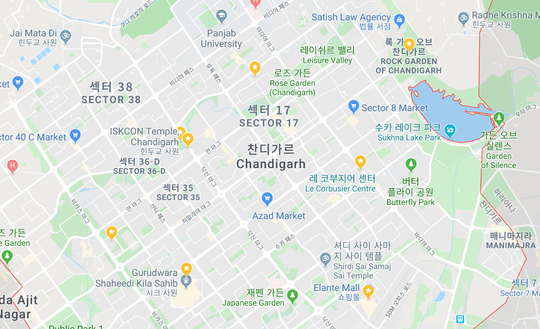 네시간 자고 일어났다. 살 사람은 살아야하니 여행정보를 찾아봤다. 정보가 없다. 뭔가 이상하다. 그제서야 깨달았다. 찬디가르는 처음부터 두개 주의 행정수도로 계획하고 만든 도시다. 지도를 보면 한칸이 가로세로 1km의 완벽한 바둑판이다. 르 코르뷔지에는 이 과정에 참여했을뿐 그 이상의 의미는 없다. 계획도시라 살기 좋을지는 몰라도 관광객이 올 이유는 단 하나도 없다. 우리나라로 치면 외국인이 관광하겠다고 세종시에 온 꼴이다.