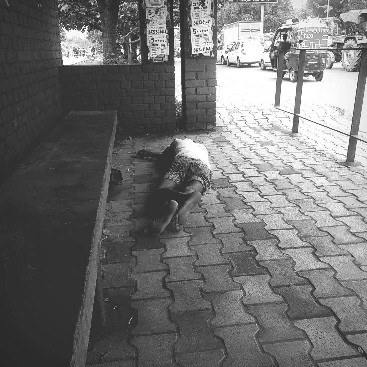 이 숙소에서 더 머물 수는 없으니 다른 숙소를 알아봤다. 택시로 30분, 버스로 1시간 거리다. 짐을 챙겨 거리로 나왔다. 20kg짜리 짐을 앞뒤로 나눠메고 걷는다. 햇볕이 뜨겁다. 거리는 델리보단 낫지만 여전히 지저분하다. 아무리 잘 계획된 도시라도 그곳에 살고 있는건 인도인이다. 델리만 벗어나면 된다던 내 환상은 무자비하게 박살났다. 간신히 정류장에 도착하니 노숙자가 엎질러져 있다. 죽은듯이 미동도 하지 않는 그의 곁을 파리들이 떠돈다. 문득 눈시울이 불거졌다. 누군가가 내게 속삭인다.