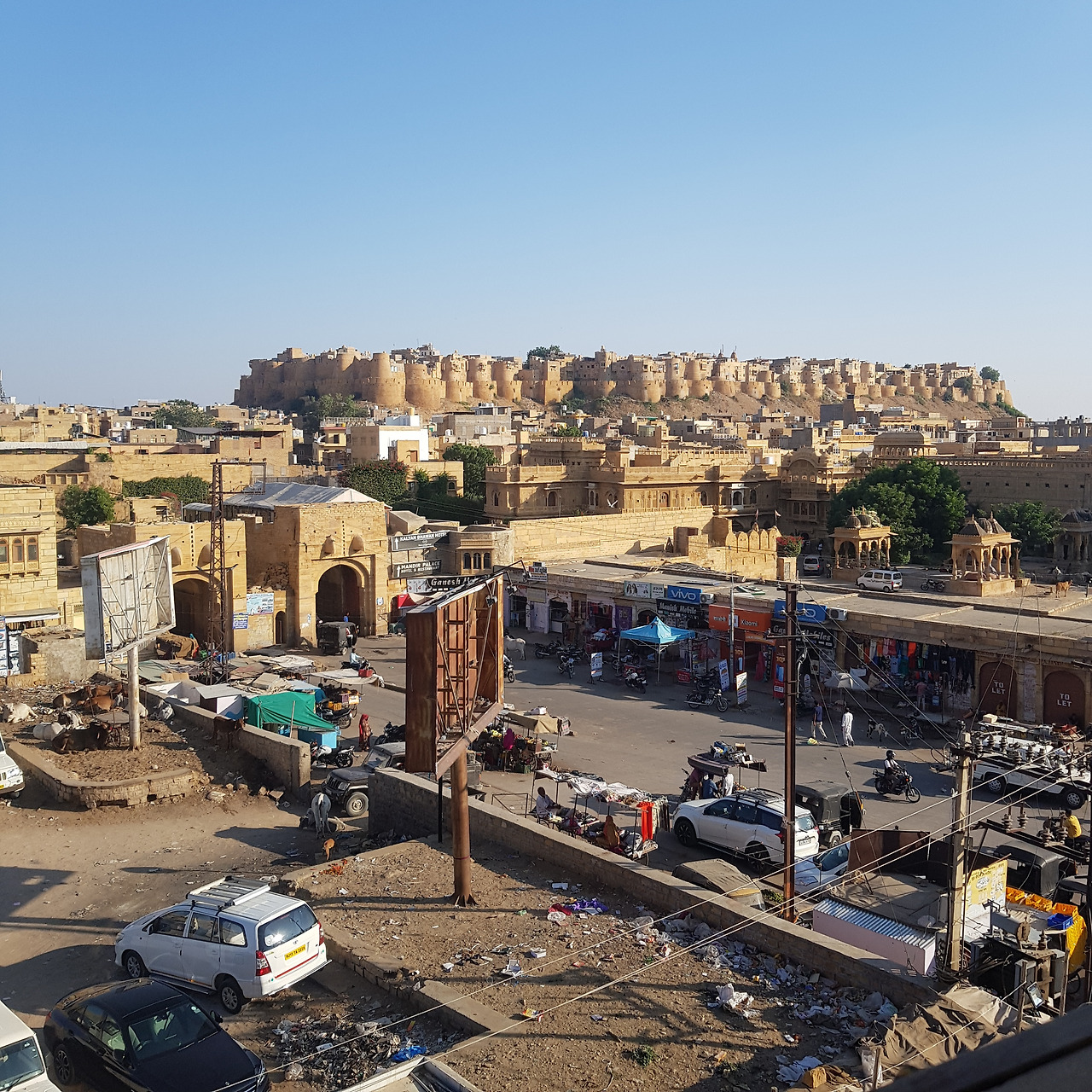 자이살메르 전경. 마을 중심에 요새가 있고, 요새 주변으로 시가지가 펼쳐져있다.