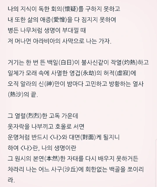 이 시를 보면 사막을 걷고 싶은 느낌이 들지 않나? 나만 그런가?