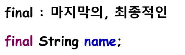 이 final이라는 녀석은 앞으로 우리가 자바의 개념을 배워 나갈 때 자주 등장하는 키워드는 아닙니다.
