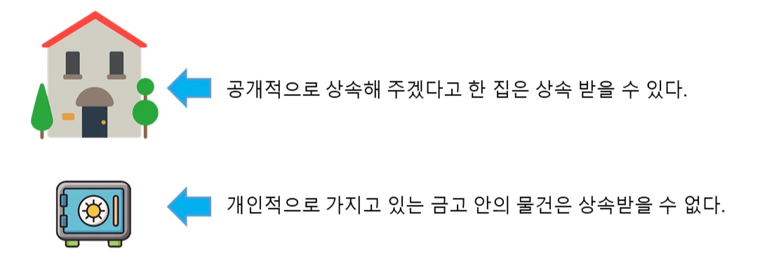 예를 들어 부모님께서 상속해 주겠다고 공개하신 것에 대해서는 상속받을 수 있겠으나 비밀 금고에 숨겨두신 재산에 대해서는 상속받을 수 없습니다.