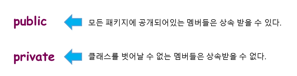 그리고 private과 같이 클래스를 빠져나올 수 없는 멤버는 상속이 불가능합니다.