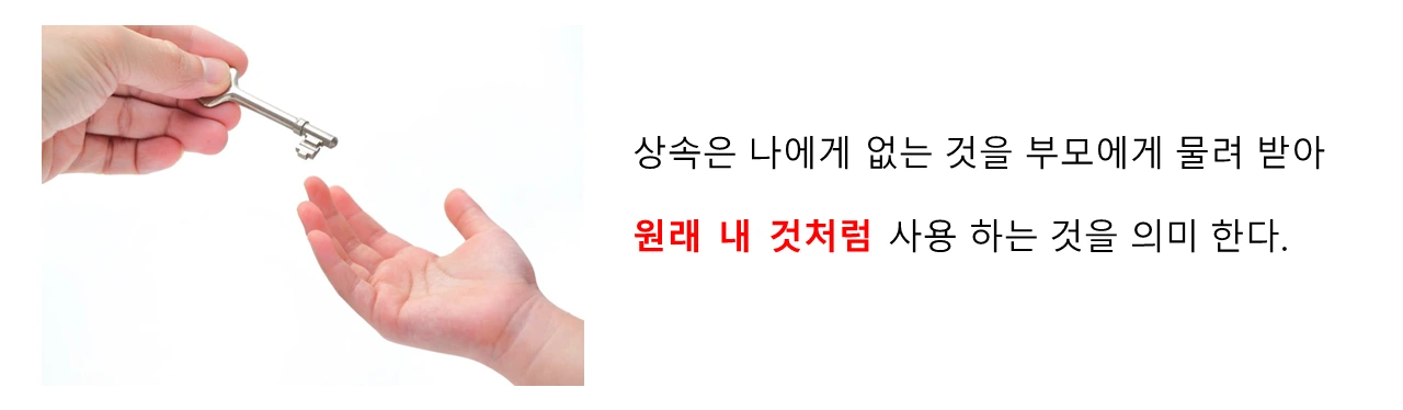 아무튼 상속이라는 것은 부모로부터 무언가를 받아서 내 것처럼 쓰는 것을 의미합니다.