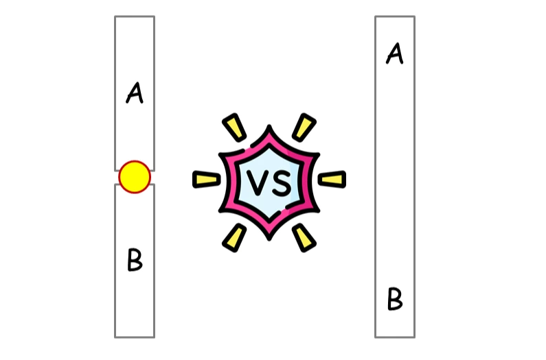 오른쪽의 그림은 A와 B를 분리할 때 부러뜨려야 할 것 같아 보이기 때문입니다.