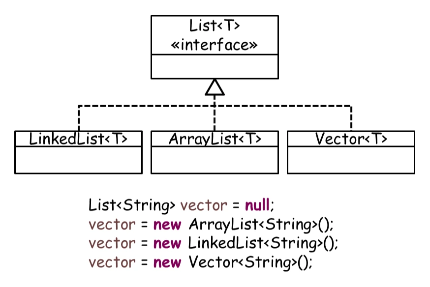 앞서 밝혔듯이 List 인터페이스를 구현받는 이들은 다형성에 의해 List 형태로 담을 수 있습니다.
