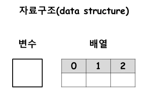우리가 앞에서 배운 대표적인 자료구조는 변수와 배열이 있습니다.