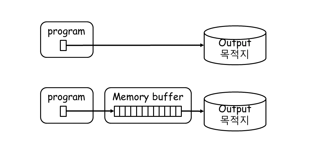 버퍼는 데이터를 버퍼 버퍼메모리라는 곳에 일괄적으로 담아서 목적지에 이동을 시켜줍니다.