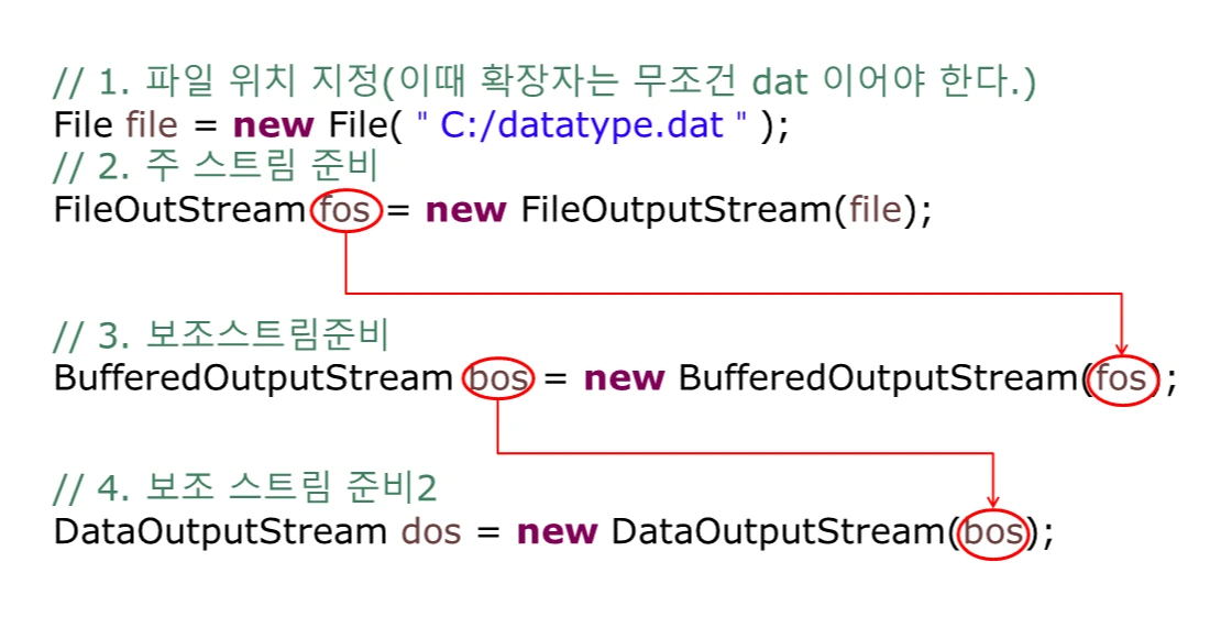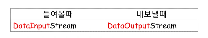 그래서 순수 자바의 데이터 타입을 보내기 위한 DataInputStream, DataOutputStream이라는 보조 스트림을 제공합니다.