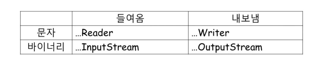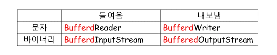 이 버퍼를 들여올 때 쓰느냐, 그리고 문자를 주고받을 때 쓰느냐의 여부에 따라 다른 사용하는 스트림이 달라집니다.