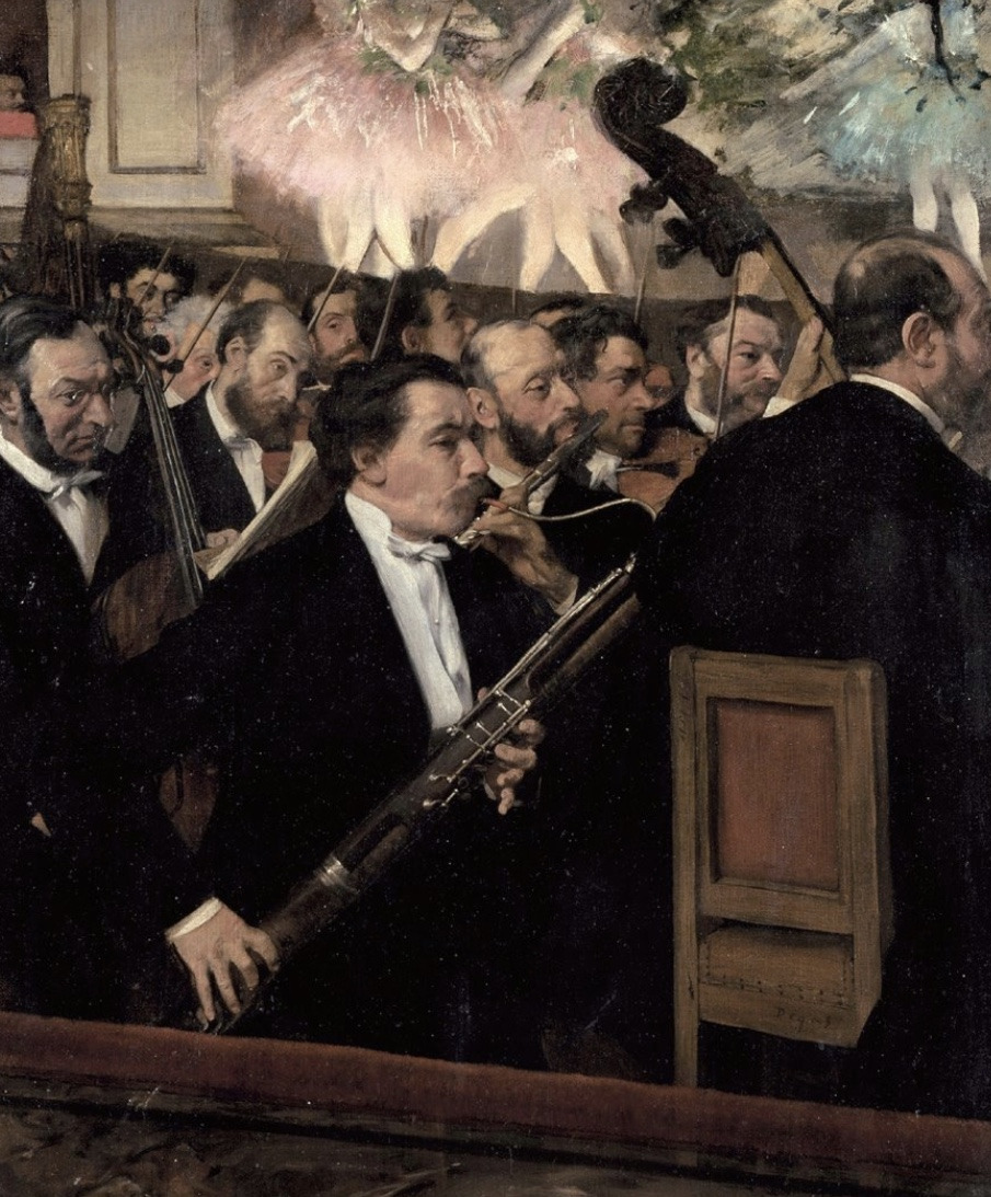 그가 발레리나를 처음 등장시킨 것은 바순을 부는 친구를 그린 그림에서 입니다. 고전음악을 좋아했던 그는 오페라에 관심이 많았는데요. 친구를 그린 그림에서 배경으로 등장한 발레리나들의 아름다움이 뜨거운 반응을 얻게 됩니다. 그 길로 발레리나들을 그리기 시작한 드가는 평생 정말 많은 작품에