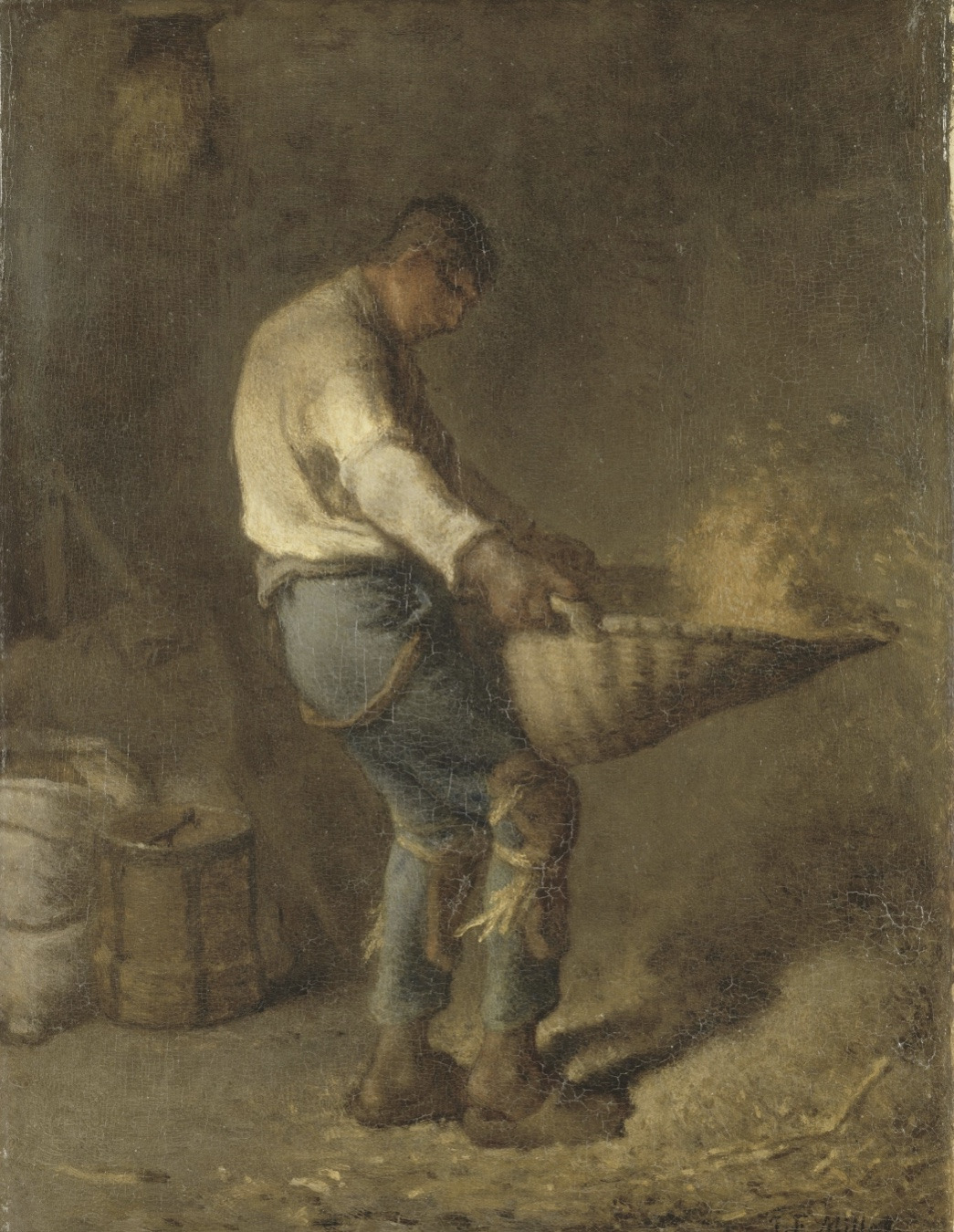 밀레가 그린 주제는 정말 평범합니다. 위에서 말한 키질하는 모습이나 씨를 뿌르는 모습 그리고 건초를 묶는 모습 등 같은 농사일입니다. 하지만 각자의 자리에서 엄숙하게 그리고 진지하게 일을 하는 그들의 태도와 분위기 때문에 우리는 이들의 행위를 결코 가벼이 볼 수 없습니다. 즐거워하지도 힘들어하지도 않고 묵묵히 일을 수행해 가는 모습에서 숭고함까지 느껴집니다.