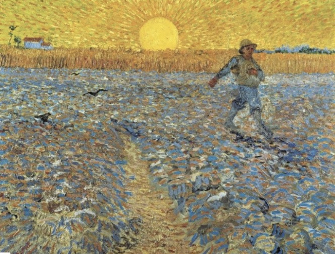 이렇게 오늘을 사는 사람의 모습에 끌렸던 걸까요? 태양의 화가 고흐는 밀레를 존경하면서 밀레의 씨뿌리는 사람을 모티브로 한 그림을 그립니다.