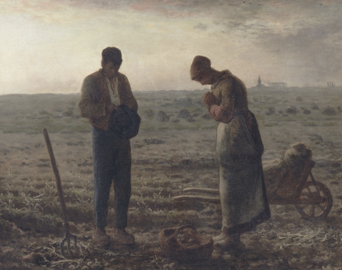 둘 중에 어떤 상황이었든 이 그림은 슬프고 조용하지만 감동적입니다. 삼종기도를 드리는 순간을 포착한 그림이라면 농촌의 힘든 삶을 수행한 하루, 불평도 불만도 회피도 하지 않고 그저 오늘 하루가 지나갔음을 감사하게 생각하는 기도, 가엾게 죽은 이들을 생각하는 따뜻한 마음과 하루를 차분히 마무리하는 자세까지 참 다양한 감정을 느끼게 해주는 그림입니다.
