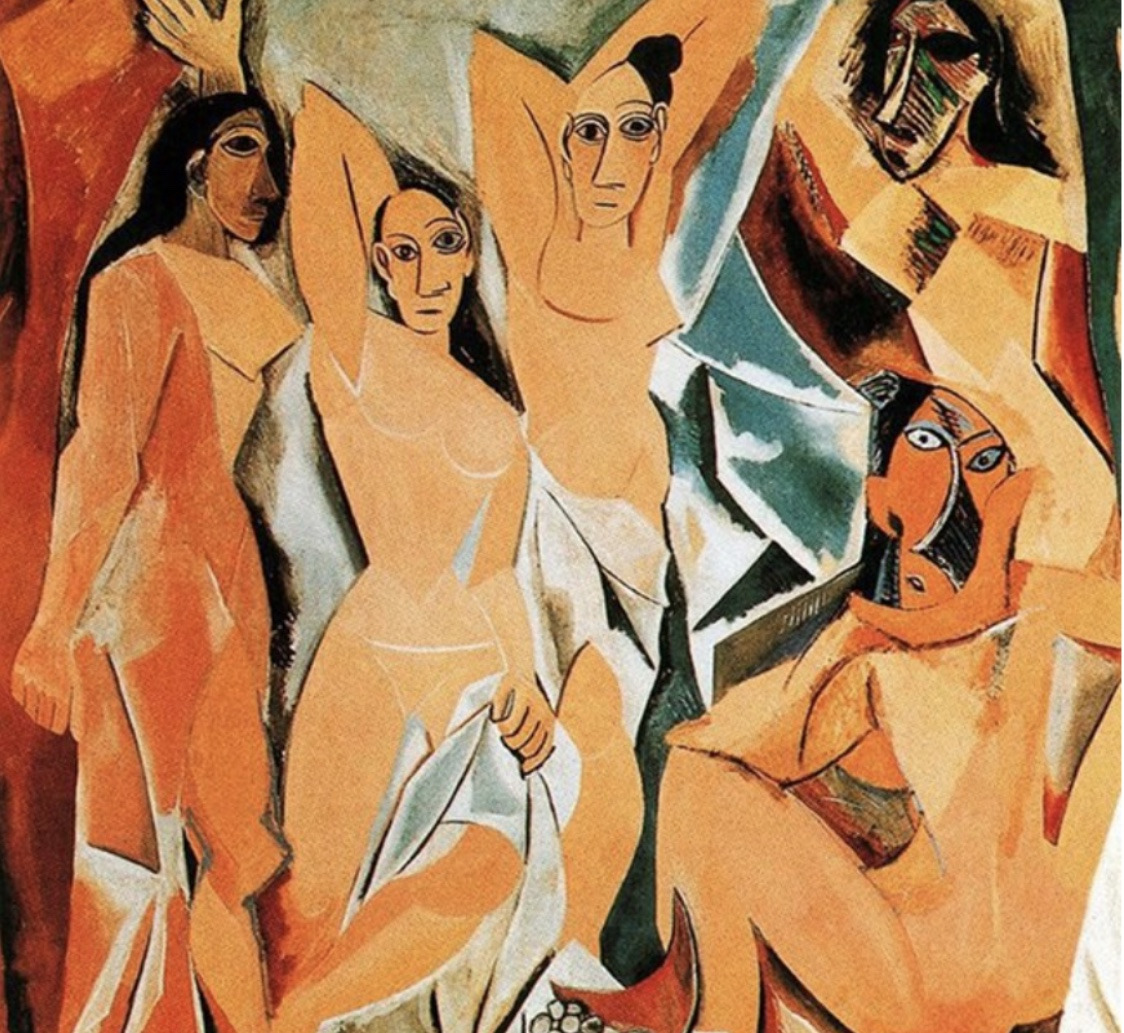 이 그림 또한 시각적으로 예쁜 그림은 아닙니다. 아비뇽의 처녀들(매춘부)을 여러 각도에서 관찰한 모습을 한 화면에 담은 그림인데요. 특히 오른쪽 하단의 앉아 있는 여인은 아주 파격적인 뒷모습과 얼굴의 앞면을 같이 보여줍니다.