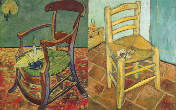 테호의 기원과 달리 두 사람의 동거는 처음부터 갈등의 씨앗을 품고 있었는데요. 고갱은 도시의 부유한 중산층 출신으로 냉철하고 세련된 도시 사람이었답니다. 하지만, 고흐는 시골마을의 목사를 지원했던 사람으로 지방의 촌사람이었습니다. 고흐가 그린 고갱의 의자와 고흐의 의자는 사물 하나로 두 사람의 취향이 너무나 다름을 보여준답니다. 고흐의 의자와 주변 배경은 소박하고 담백한 고흐의 모습을 보여줍니다. 반대로 고갱의 의자는 화려하고 세련되게 표현되어 있습니다.