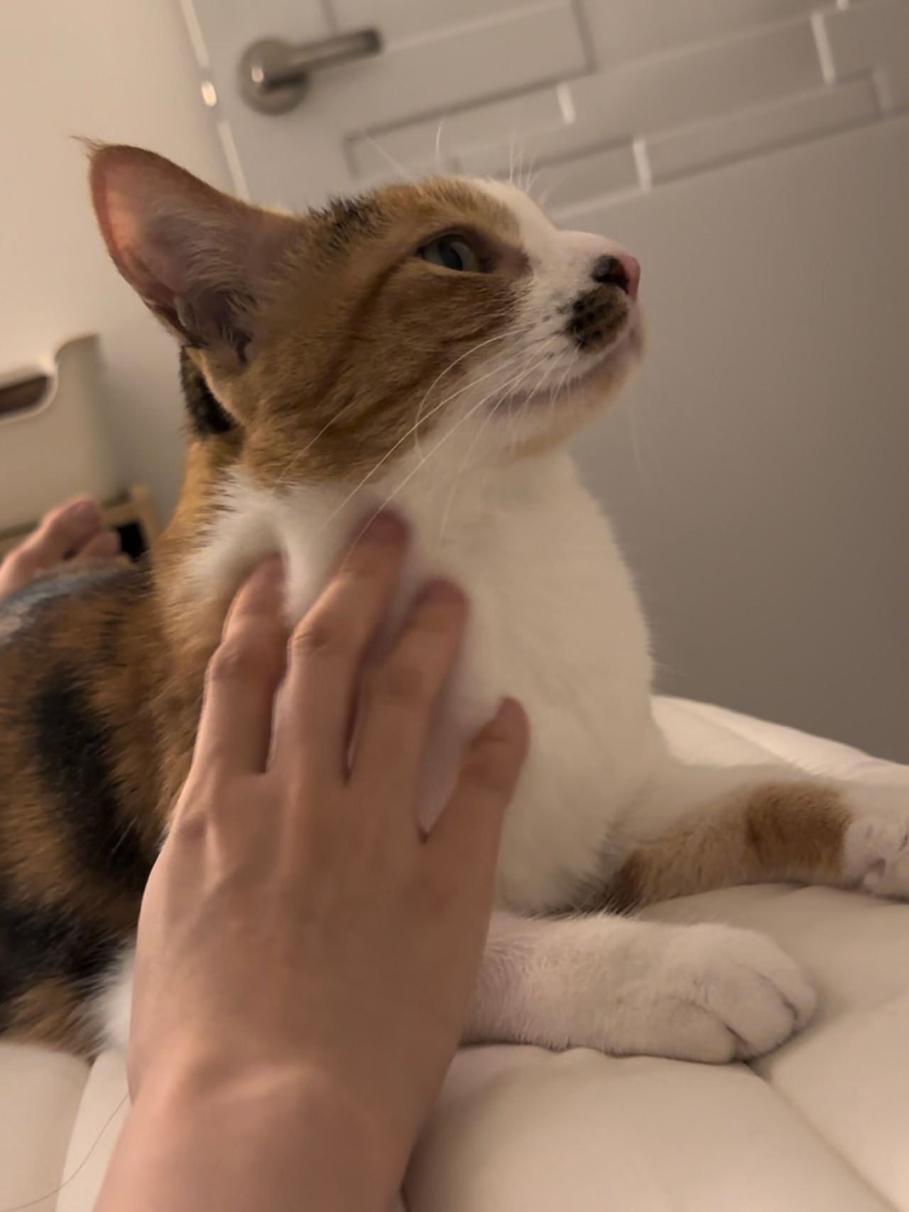 3년이 다 되어 가는 우리 집 침대는 그리하여 거의 공식 고양이 마사지숍이 되었다. 이제는 고양이 손님 모카가 눈빛을 보내지 않아도, 쿠션에 자리를 한다면 잠이 들기 전 혹은 일어나서 자동으로 마사지가 시작된다. 사람세계에서는 괄사마사지가 유행인데, 우리 집 마사지숍도 루틴이 있다.
