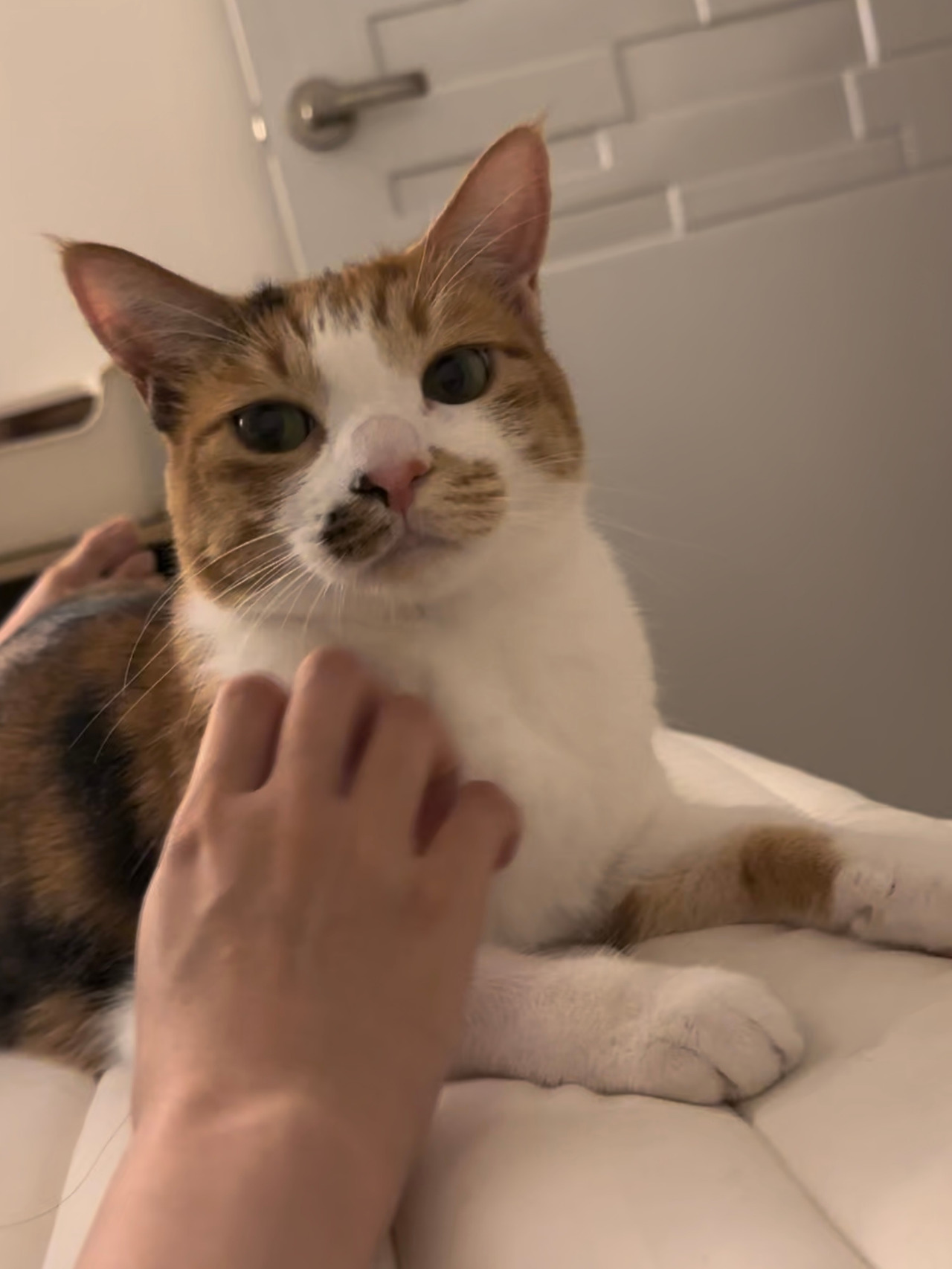 내 머리맡 베개 옆 쿠션에서 늘 잠을 자는 모카는 자기 전에 한번, 일어나서 한번, 나에게 슈렉 장화 신은 공양이 버금가는 귀여운 얼굴과 눈빛을 보낸다. 그럼 집사는 쓰다듬지 않을 수 없다. 게다가 매우 부드럽기 때문에 우리 집 침대에 있던 인형들은 하나둘 어디론가 사라졌다. 물론 쓰다듬으면 털이 빠지는 부작용도 있지만.