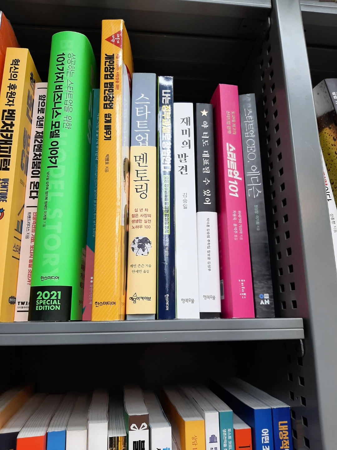 그리고 한, 두 권씩 사간 서점들에서 ‘재미의 발견’은 처음부터 서 있었다. 부천점에 들르신 고모는 책을 한참을 찾았다. 미안하셨는지, 책 사진은 보내주셨지만 책이 어떻게 꽂혀있었는지는 보여주시지 않았다. 그래서 내가 물었다. “책이 서 있던 가요, 누워있던 가요?”