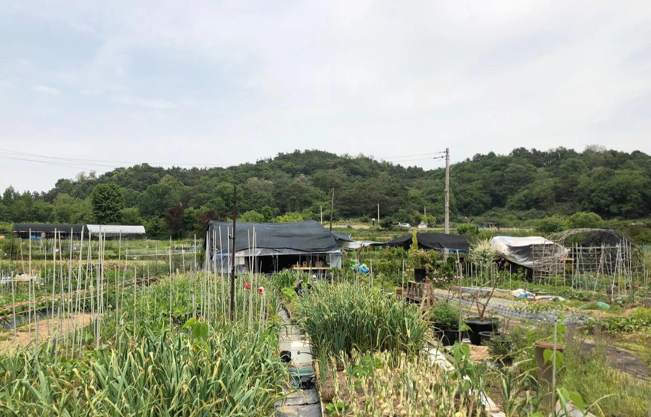 도롯가에서 멀찌감치 보니, 농장은 생각보다 푸르렀고, 아늑하게 길에서 벗어나 있다. 뒤로는 작은 산이 올막졸막한 텃밭들을 감싸 안듯 펼쳐졌다.