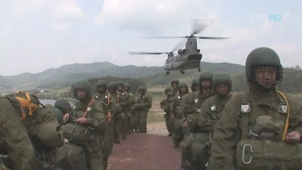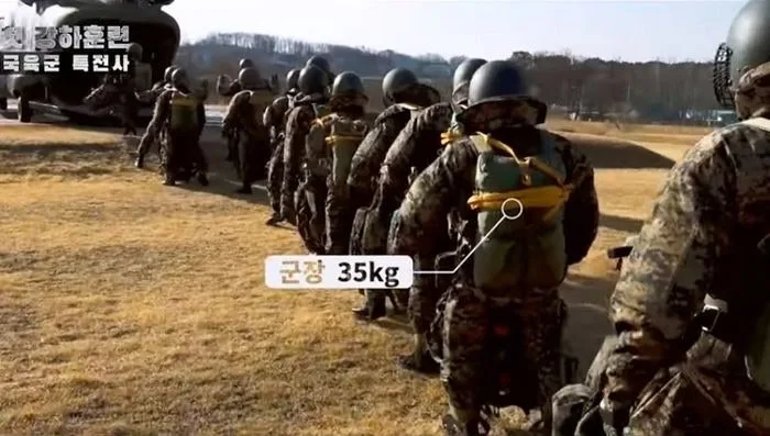군장과 낙하 선의 무게가 이미 60kg에 육박했다. 제대로 일어서는 것도 힘들었고 예비 낙하산 밑에 걸어둔 군장의 무게 때문에 허리를 펴는 것조차 힘이 들었다.
