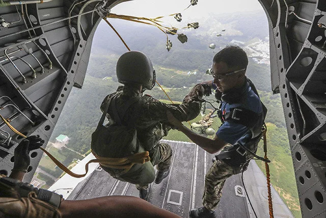 낙하산이 펼쳐졌다. 착지와 동시에 필요한 전술 행동들을 되새기면서, 낙하산을 접어서 정리한 후 목표지역으로 이동을 시작했다.