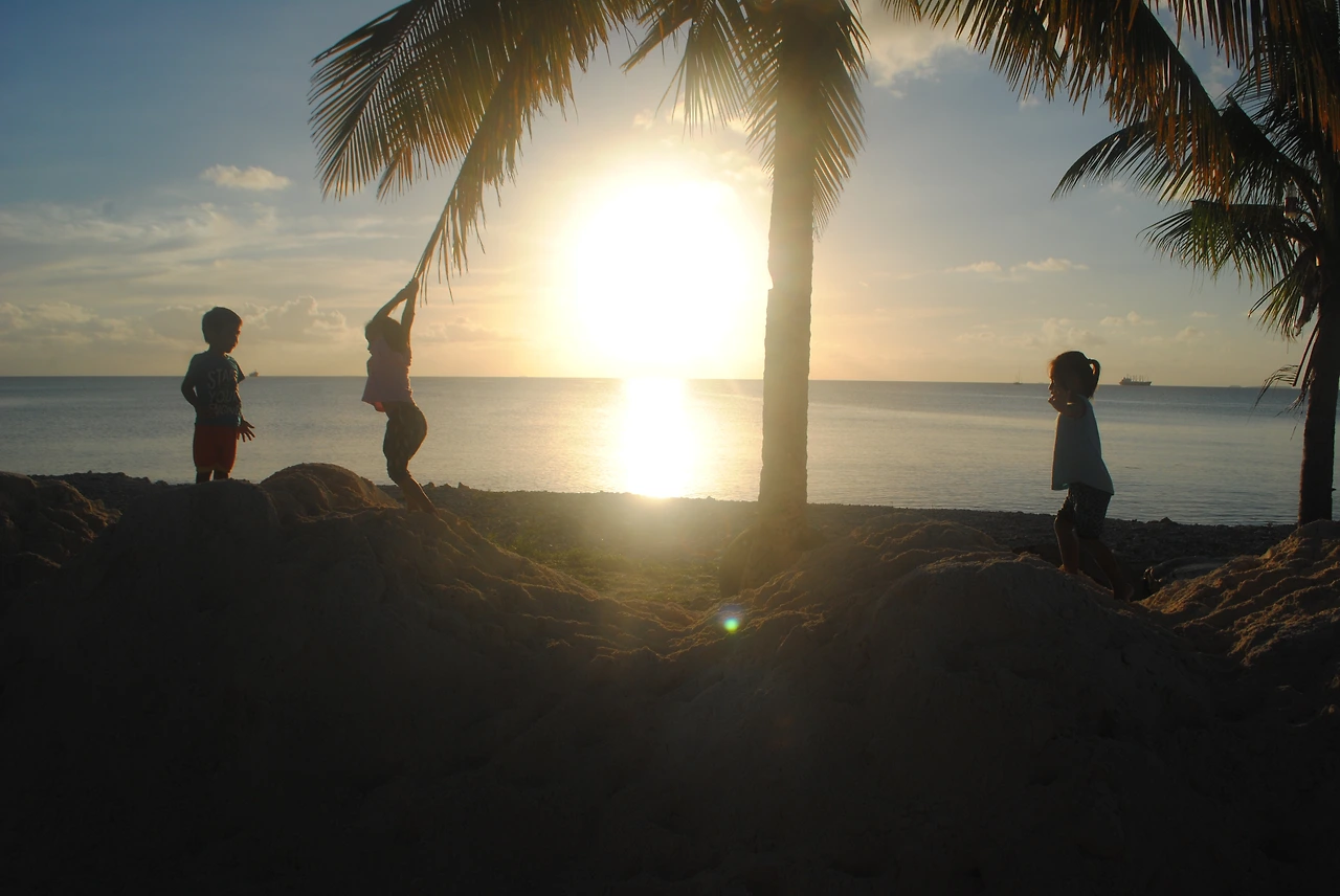 투발루에 대한 자세한 이야기는 다음으로 미루고 오늘은 당시 우연히 만났던 아이들에 대한 이야기와 기후변화에 대한 이야기를 나눌까 합니다. 8월 3일 그날도 취재를 모두 마치고 카메라를 든 채 해변을 걷고 있었습니다. 시간은 오후 5시를 조금 넘은 시간. 세명의 아이들이 모래 해변에서 재밌게 시간을 보내는 모습이 눈에 들어왔습니다. 뭐가 그렇게 즐거운지 '깔깔깔' 소리 내고 웃고, 아이들 곁으로 파도 소리가 상큼하게 다가오는 순간이었습니다. 야자나무를 이용해 그네를 타면서 그 어느 순간과 바꿀 수 없는 한때를 보내고 있었습니다. 순간, 남태평양으로 지는 석양이 아이들을 비췄습니다.
