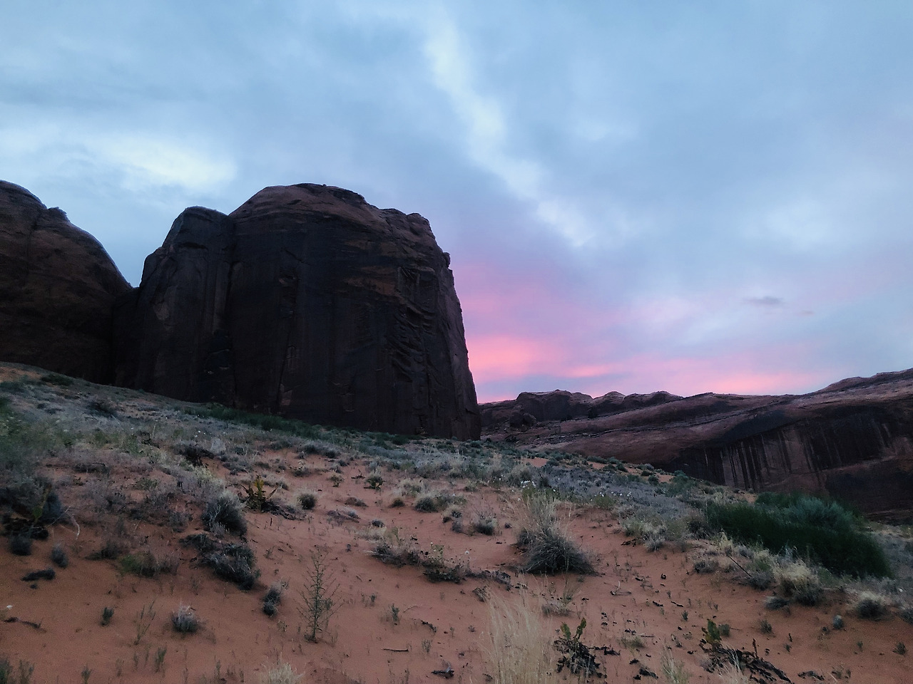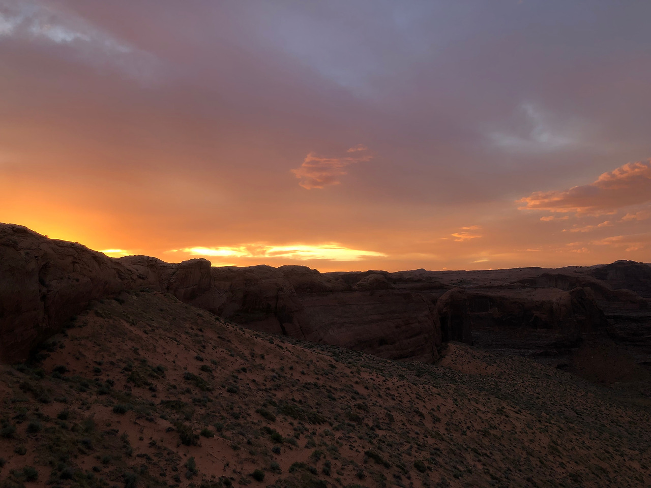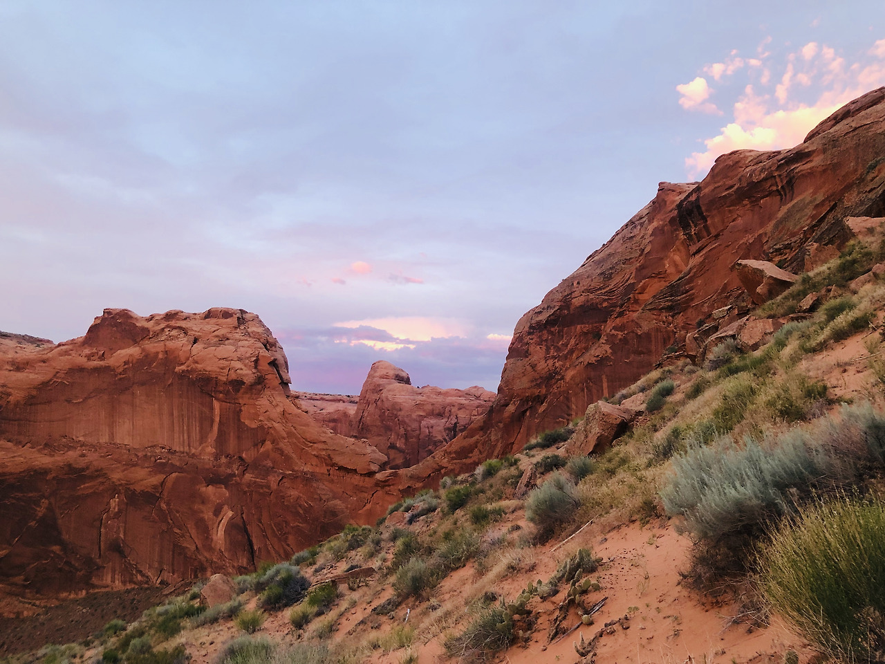 " 거대한 암석에 둘러싸여 붉은 모래 언덕을 내려간다. 건조한 모래언덕 속에서도 생명의 뿌리를 내린 이름 모를 새하얀 꽃과 은은하게 맡을 수 있는 세이지 냄새. 그리고 불타는 구름을 만들어내는 석양. 여기까지 어떻게 내가 닿을 수 있었을까. 나는 울 수밖에 없었다. "