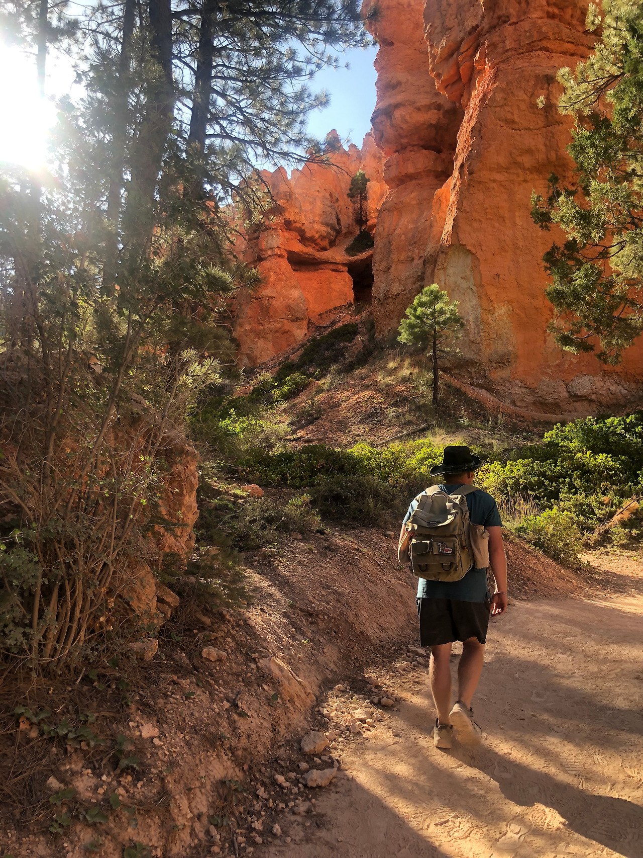 " 브라이스 캐년은 다양한 뷰 포인트들이 있다. 그래서일까? 관광객은 대다수는 이곳저곳의 뷰 포인트를 관람하고 돌아서 버린다. 하지만 브라이스의 참맛은 바로 그 후두스(Hoodoos) 사이사이를 거닐며 그 속 깊숙이 들어가야 맛볼 수 있다. 조각상처럼 솓아 있는 주홍빛 암석과 그 바로를 달리고 있는 트레일은 브라이스 캐년의 진가를 보여준다. 따뜻한 햇살과 주황빛의 주변 풍경은 조화롭기 그지없고, 조금만 더 깊숙이 들어가면 보이는 나무의 초록빛은 대조를 이루며 그 자태를 뽐낸다. 브라이스에서 꼭 해야 하는 한 가지는 당연히 하이킹이다."