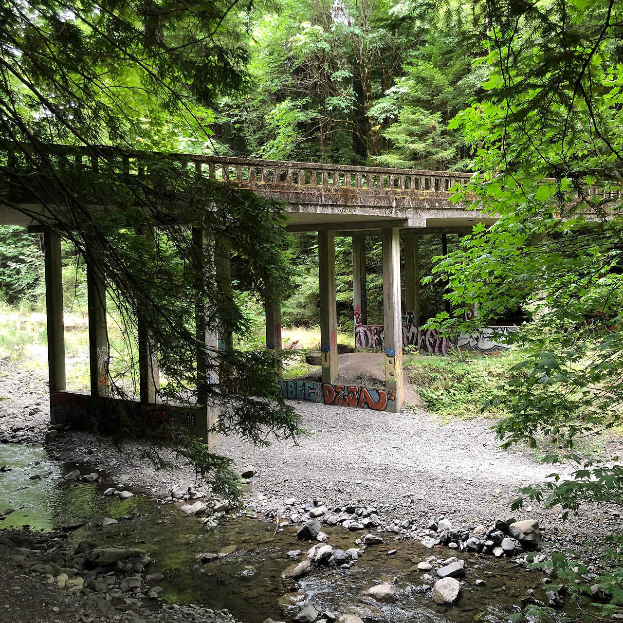 홈벌트 주립공원에서 만난 중년의 남자가 소개해 준 곳으로 이동했다. 소개해주면서 자기가 가끔씩 방문하는 곳이며 그곳을 가는 사람이 거의 없을 것이라고 일러주었다. 좌표를 받은 우리는 바로 그곳으로 향했다. 도착한 그곳은 과연 사람이 없었다. 아무도 만나지 못했다. 주차한 곳도 우리 차 한 대뿐이었다. 우리는 숲 속으로 향해 걸어갔다. 이곳은 과연 사람들의 발길이 그렇게 많지 않았던지 녹음으로 가득 차 있었다. 초록빛으로 온통 물들어 있었다. 희미한 트레일을 쫒아 발길을 향했다. 온통 초록빛으로 물든 숲 속을 거닐다 보니 왜 사람들이 많이 찾지 않은 이유를 발견했다. 1938년도에 지어진 끊어진 다리가 우리 눈 앞에 보이기 시작했다. 다리 초입 부근이 끊어져 있어서 넘어서 다리 위로 올라가 보았다. 다리를 건너서 쭉 트레일을 이어서 하고 싶었지만 너무 멀리 가는 것이 아닐까 싶어서 우리는 다리 위에서 흐르는 얕은 개천을 감상하고 다리 아래로 내려갔다. 다리 아래에는 다녀가 사람들의 그래피티가 채워져 있었다. 이곳을 찾는 사람은 몇 없어도 온 사람들의 흔적은 고스란히 다리 아래에 새겨져 있었다. 다리에서 휴식을 취하고 차로 돌아오면서 이끼와 녹음을 관찰했다. 참으로 신