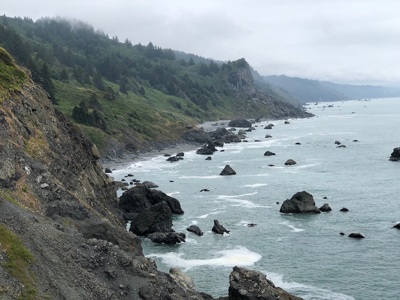 낯선 이 가 보여준 작은 여정을 마친 우리는 레드우드 국립공원으로 향했다. 향하는 길에 해안 도로를 이용하기로 했다. 바다와 숲을 동시에 볼 수 있는 게 이곳의 매력 중 하나이다. 굽이 굽이 숲 속을 헤매다 어느 순간 바다가 눈앞에 펼쳐진다. 세상에서 제일 넓은 바다인 태평양을 눈에 담을 수 있다. 3박 4일간 캠핑을 하면서 맑은 날의 바다와 흐린 날의 바다를 보았다. 맑은 날에는 바다의 싱그러움이 눈에 담겼고, 흐린 날에는 넓고 깊은 바다의 무서움이 눈에 담겼다. 절벽 아래에서 부서지고 있는 파도를 보고 있으면 바다의 힘을 느낄 수 있었다. 절벽
