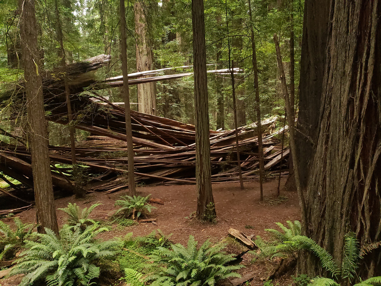 바다를 보고 다시 돌아온 레드우드 국립공원. 홈벌트 주립공원에서도 보았지만 레드우드 국립공원에서 다시 마주하게 된 레드우드는 역시나 거대했다. 어떻게 저렇게 나무가 크게 자랄 수 있는지 신기했다. 국립공원답게 주립공원보다 더 큰 나무와 중간중간 부러진 나무들이 그 위엄을 자리했다. 어떻게 저렇게 나무가 부러져서 자리 잡고 있을 수 있는지 경이로웠다. 놀라웠다. 나무 앞에서 한없이 작아지는 나를 느꼈다. 항상 캠핑을 하면서 드는 생각이지만 거대한 자연을 마주하면 새삼 내가 얼마나 작은 존재인지를 깨닫게 된다. 지구라는 행성 안에서 모두가 공존하며 살아가는 가운데 인간이라는 내가 얼마나 작을 수 있는지를 생각해보게 된다. 사진으로는 담기 힘든 이 나무들을 보면 진짜 이곳은 방문해볼 만한 가치가 충분하다고 생각이 든다. 사진으로는 담아가는 것보다 눈으로 담아가는 이 모습이 진짜라는 생각이 들었다. 이러한 레드우드 숲 속에서의 캠핑은 여태까지 한 캠