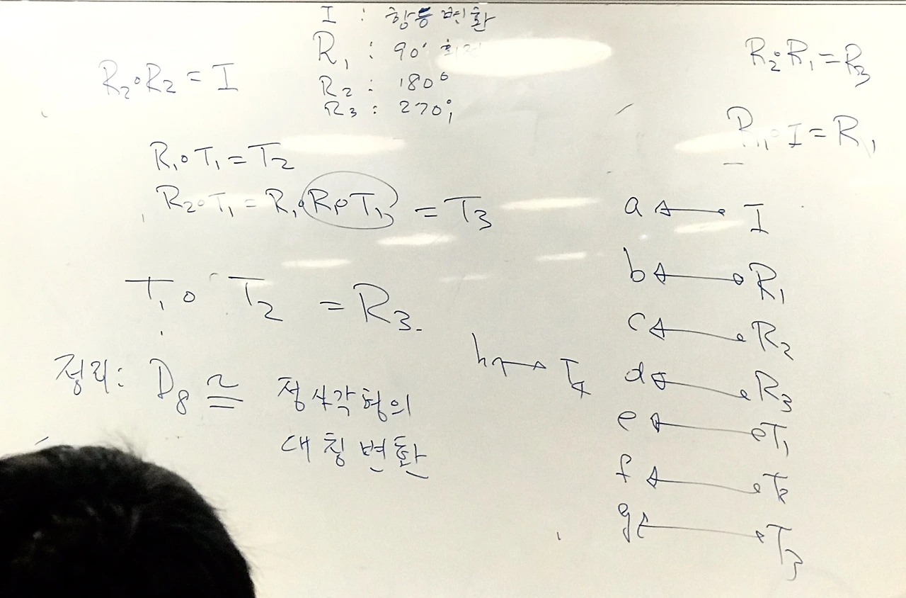 T. T1 = 좌우 반전, T2 = 대각선 반전, T3 = 상하 반전이라고 해보자.