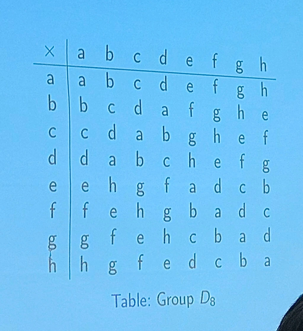 Group D8 은 정사각형의 대칭에 대한 그룹과 isomorphic , 동형이다. 구조가 같다.