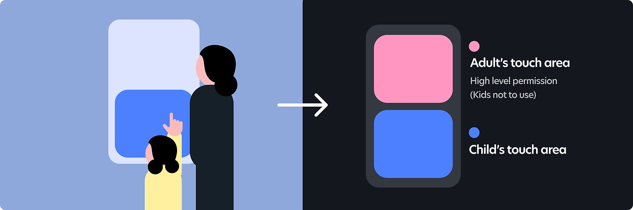 서비스 디자인에서 프로토타입은 필수입니다. Hearth Display는 이 UT를 통해 어른이 조작해야하는 높은 레벨의 권한(컨트롤 버튼 등)은 아이 손에 닿지 않을 스크린 상단에 배치했어요. 반면 아이가 주로 이용해야하는 버튼은 최대한 하단에 배치시킴으로써 손을 어렵게 뻗지 않아도 쉽게 터치할 수 있게 했고요.