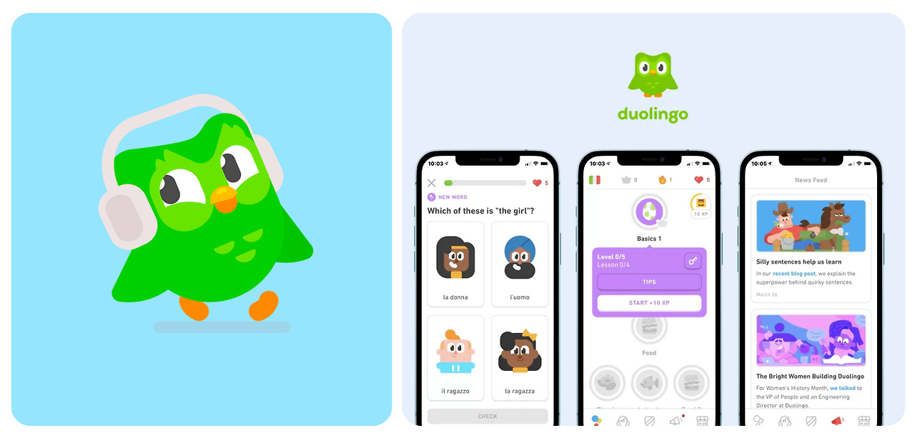 추가로 Nathalie Stratton는 아이를 위해 디자인된 좋은 서비스로 Duolingo를 언급했어요. 듀오링고는 3-6세 아동을 위한 언어 학습 앱으로, 일러스트 위주의 정보 구성과 복잡하지 않은 레이아웃, 큰 버튼과 텍스트등이 눈에 띕니다. 이런 특징들이 바로 아동을 위한 디자인 원칙이고, Hearth Display가 반영하려 노력한 부분이라 예상되네요.