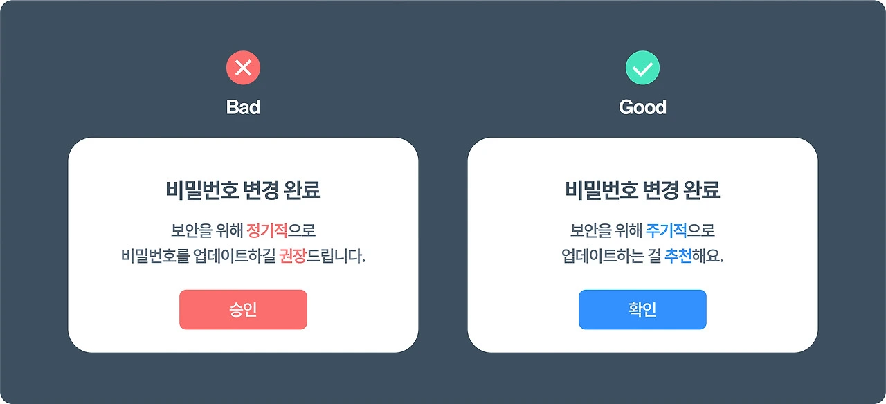 같은 의미라도 표현 방식에 따라 전달력과 신뢰도가 달라집니다. 사용자가 익숙하게 사용하는 단어와 문장을 조사하고 반영해야 합니다.