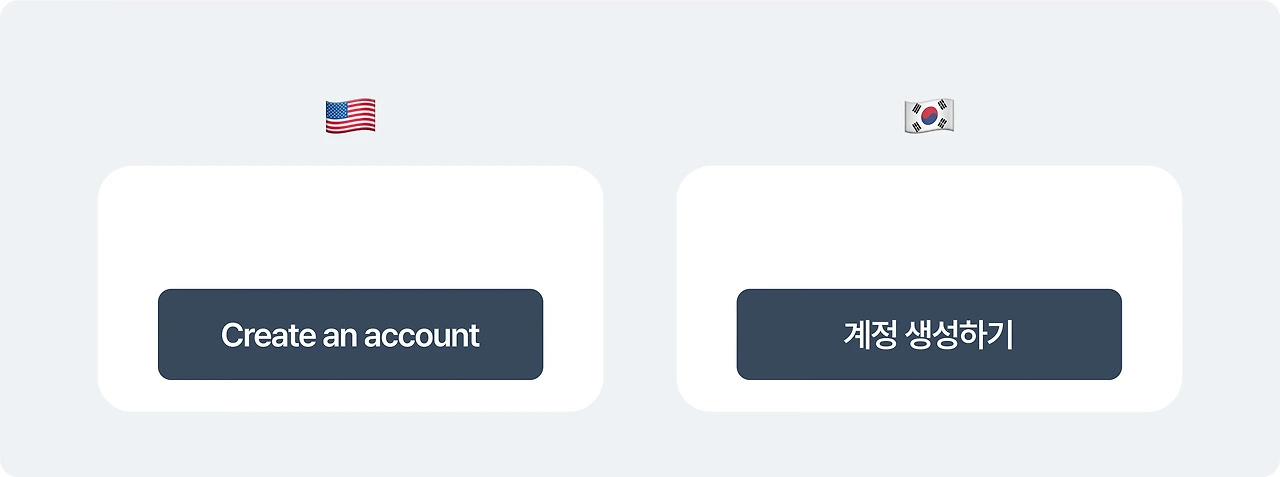 한국어 UX 라이팅에서 흔히 보이는 패턴 중 하나는 바로 [-하기]로 끝나는 버튼과 문구입니다. 외국에서는 동사를 사용하여 버튼의 문구를 작성하길 권장합니다. 예를 들어 회원 가입이 필요한 경우 'Create your account'와 같이 동사로 시작하는 문구를 사용함으로써 사용자가 어떤 행동을 취해야 하는지 가장 먼저 인식시킵니다. 문제는 이 논리가 한국어에 그대로 적용되기 힘들다는 점인데요.