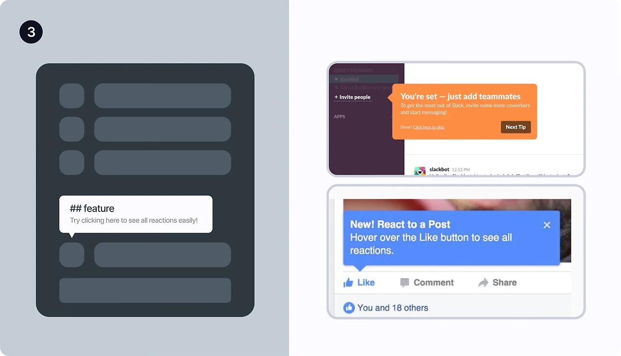 필수 기능이라면 강제 온보딩이 효과적이지만, 피로감이 높아질 수 있으니 유의한다.