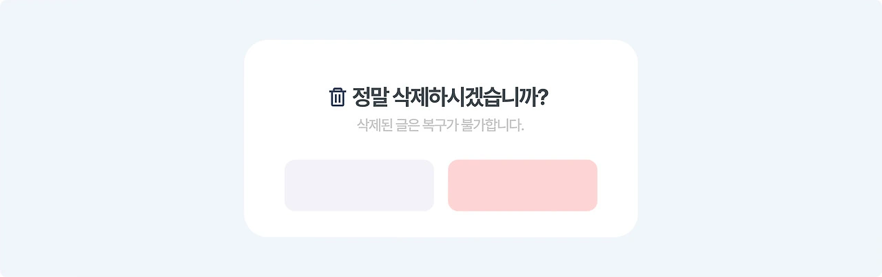 단, 이런 확인창은 너무 자주 사용될 시 사용자가 습관적으로 '확인'을 누르게 되어 오히려 실수를 증가시킬 수 있기 때문에, 반드시 중요하고 되돌릴 수 없는 순간에만 신중히 사용해야 합니다.
