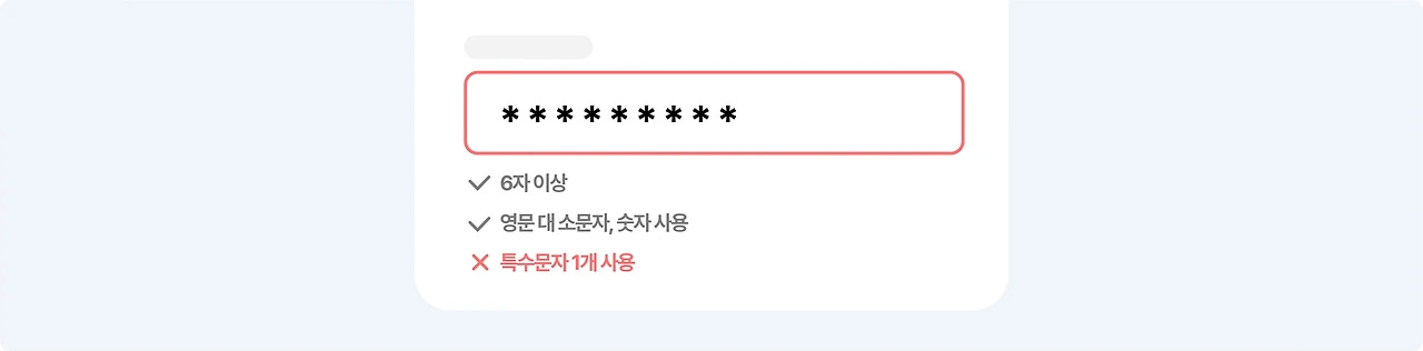 ✏️ 입력 실수가 자주 발생하는 폼에서 제공되면 좋은 UX로, 에러가 발생한 뒤가 아니라 '발생 즉시' 피드백을 제공해 잘못된 정보를 빠르게 인지시키는 방법입니다. 불필요한 반복 입력의 스트레스를 줄이고 효율적인 상호작용을 유도하는 설계입니다.