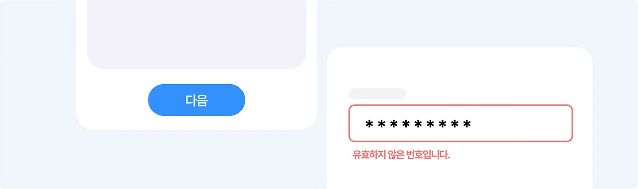 특히 이 경우에는 빨간 글씨, 에러 아이콘, 테두리 강조, 진동 애니메이션 등의 시각 요소가 함께 설계되면 더 빠르고 정확한 오류 인지가 가능합니다.