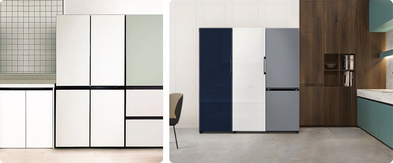 삼성 비스포크 냉장고 라인업만 봐도 이런 부드러운 칼라를 많이들 뽑고 있잖아요. "가전의 가구화"라는 말도 있듯이, 집에 들이는 부피 큰 제품들이 서로 비슷해지는 것 같아요. 분명 각기 다른 브랜드의 제품인데, 모아두면 하나의 브랜드처럼 보입니다.