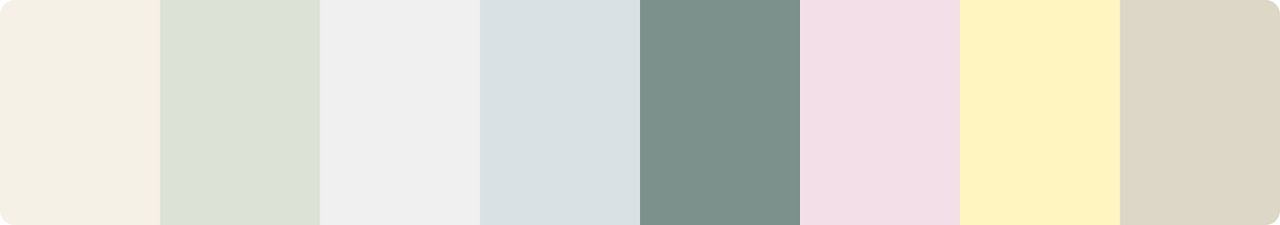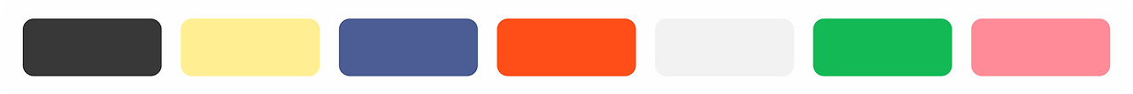 여러 가구들을 구경하며 가장 크게 느꼈던 점은, 바로 '칼라 톤이 다들 비슷하다' 였습니다. 낮은 채도 + 매트한 색이 정말 많더라고요. 그리고 중간에 쨍한 포인트 칼라 소품 두기. 기억을 더듬더듬 칼라 팔레트로 뽑아보면 이런 색 조합이 많았습니다.