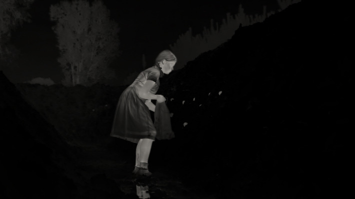 해당 연출은 한 밤 중 동네 소녀가 아우슈비츠 농지에 일하는 유대인들에게 몰래 과일을 두고 가는 장면에서 이용됐는데, 낮과 밤이라는 시간적 대비와 방관과 도움이라는 행위적 대비가 해당 연출로 더 극명하게 다가왔던 것 같다. 시각적으로 확 전환되는 경험이 신선하고 기묘했다.