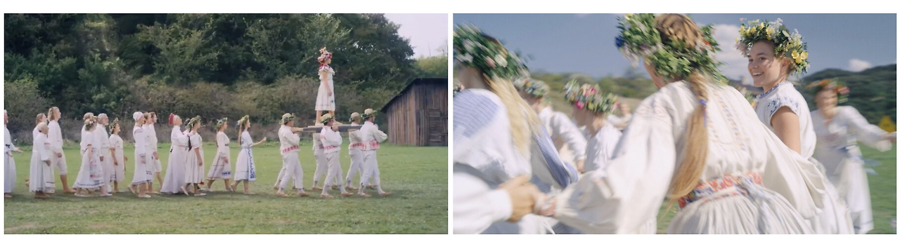 그 왜, <미드 소마>에서 사람 죽어나가는 잔인한 장면은 쏙 빼고. 하얀 옷 입고 꽃다발 들고 춤추는 장면만 무한 반복되는 영화같애.