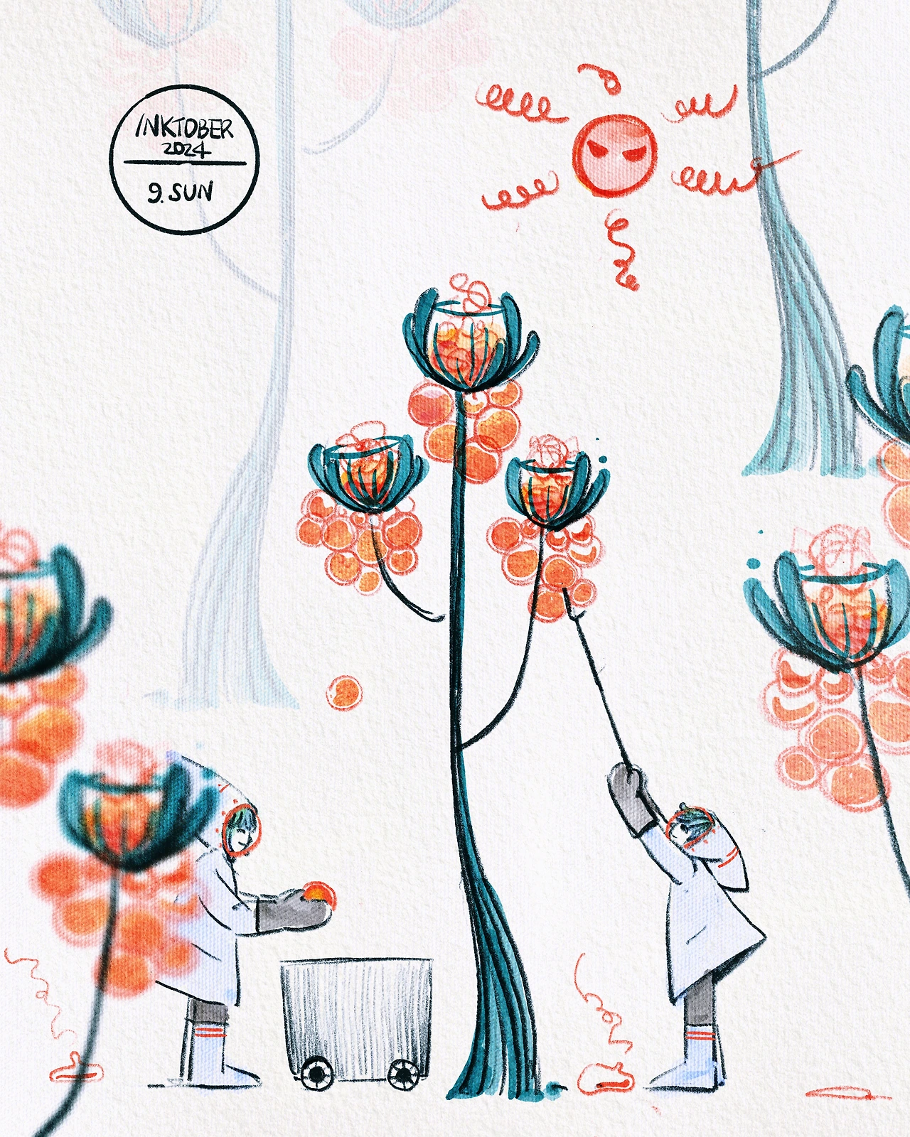 태양의 빛조각은 봉우리에 담겨 약간 슬라임의 질감으로 바뀌고 이는 방울과 연결된 튜브들을 통해 아래 방울들로 이동하고 방울에 담기면 기체의 형태로 바뀐 후 어느 정도의 크기가 되면 다음 방울에 담긴다. 이 방울들을 계속 방치하면 땅에 떨어져 담긴 조각들은 풍선에서 바람 빠지듯 슈—우욱 하고 사라져 버린다.