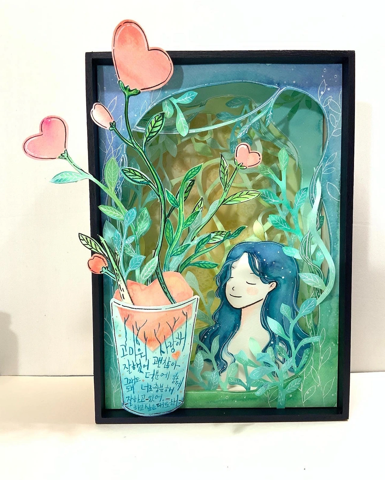 드로잉 일부를 종이로 표현한 작품과 디지털 드로잉을 보실 수 있어요.